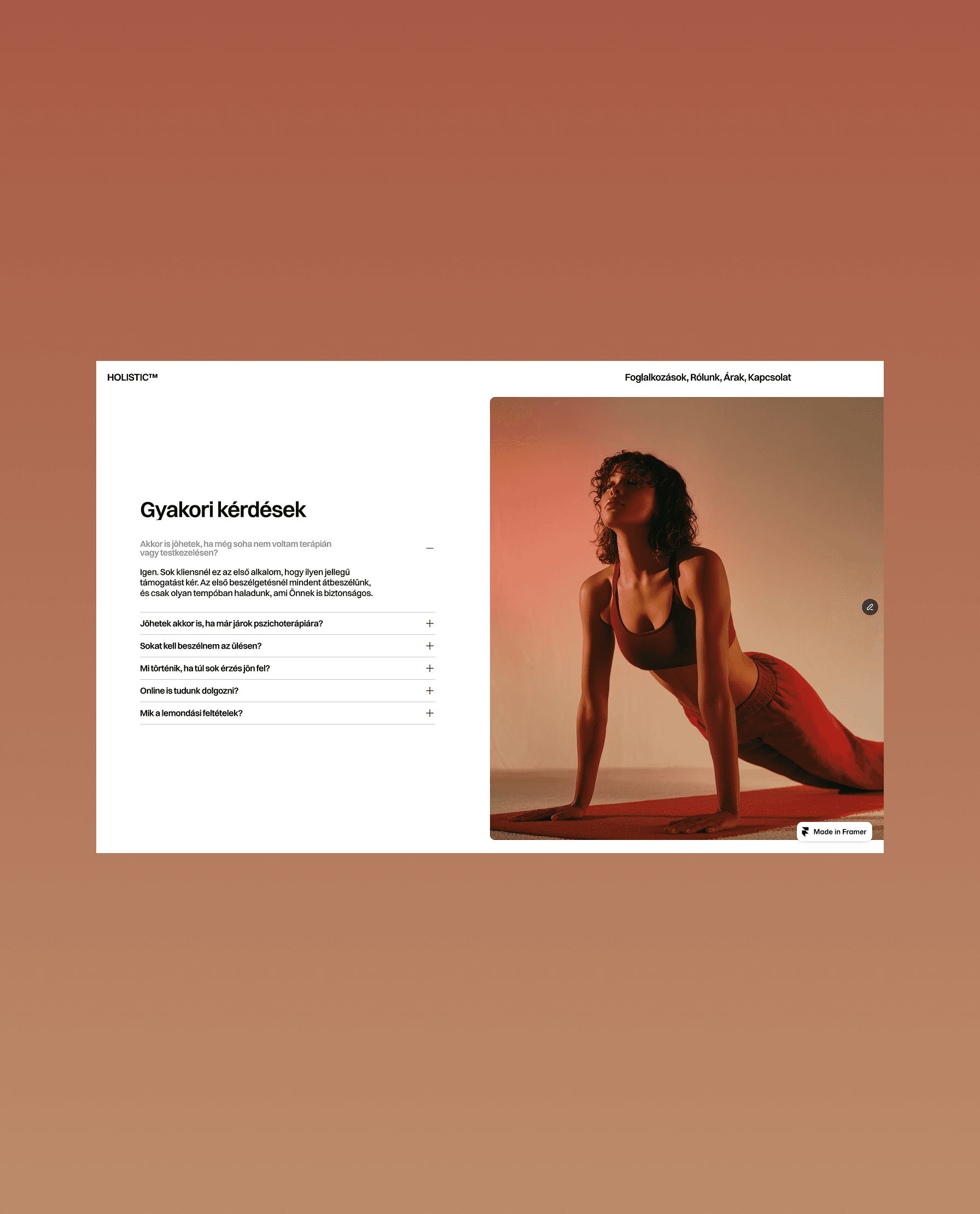 A megbeszélt irány alapján elkezdem felépíteni az oldalt Framerben. Kapsz egy előnézetet, ahol megnézheted, hogyan áll össze a weboldalad – és jelezheted, ha valamin szeretnél finomítani.